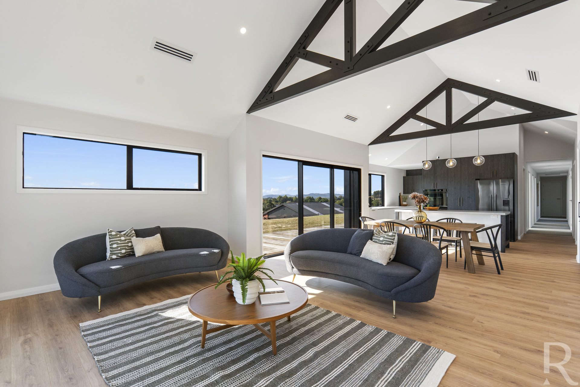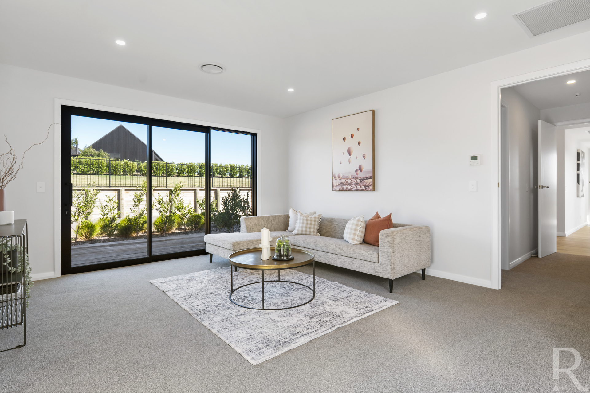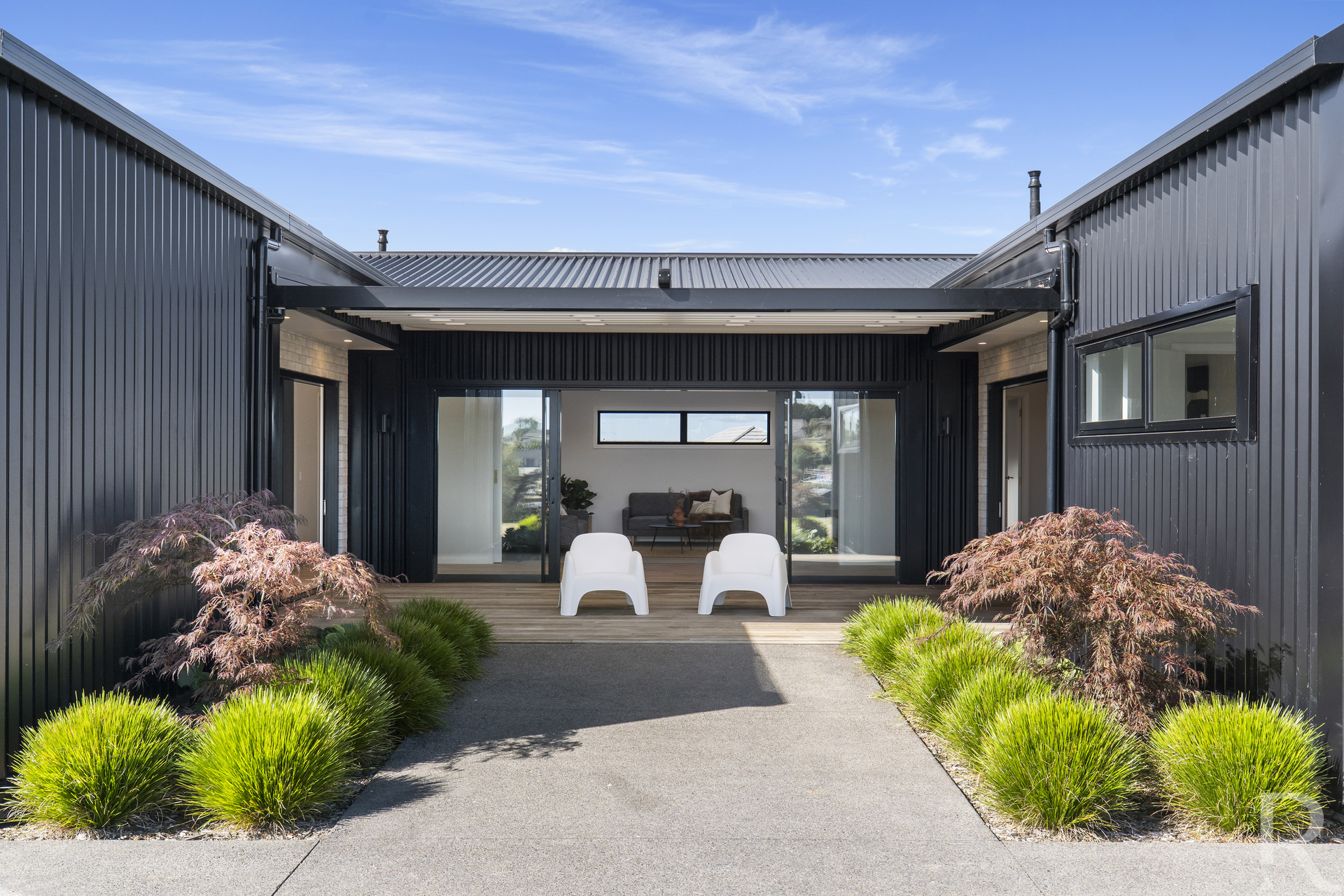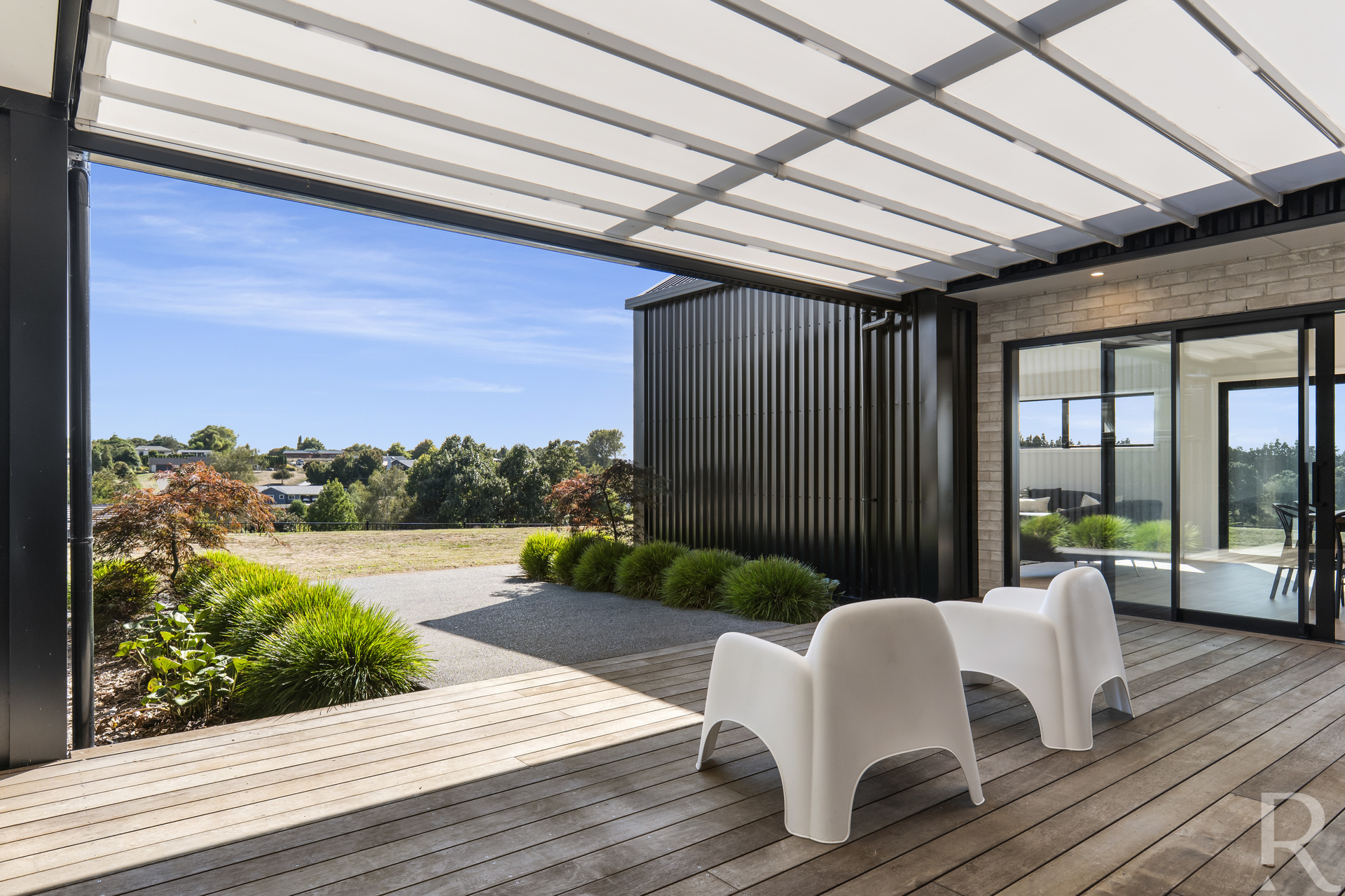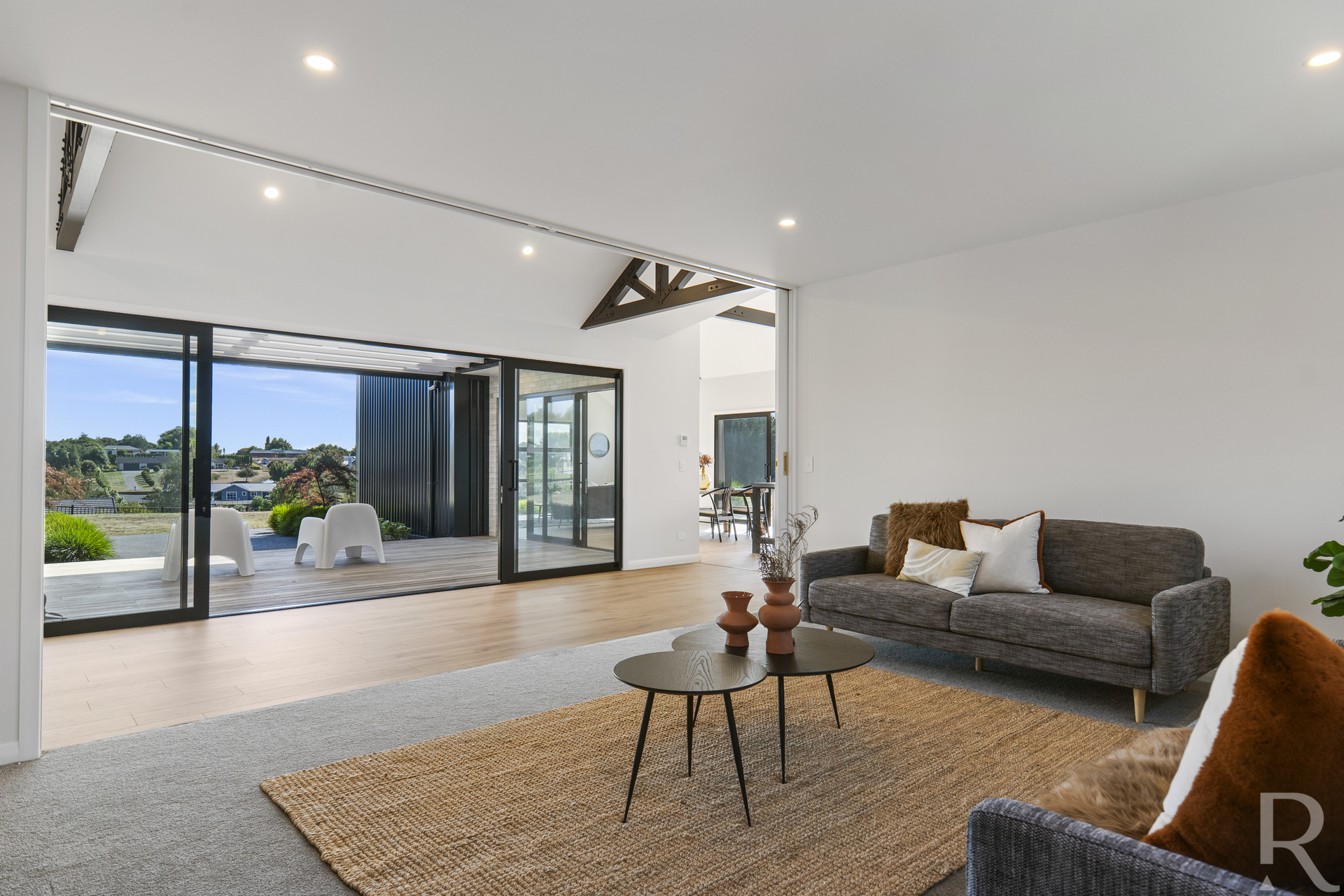For those cozy nights in, the separate media room offers dual purposes. When the cavity doors are closed, it transforms into a snug cinema, perfect for movie nights. When opened, it creates a seamless atmosphere that effortlessly merges with the outdoor decking, inviting the beauty of the outside world in.
